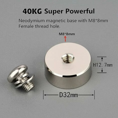 【Aimant de coupe en néodyme beaucoup plus compatible】: Goujon fileté male standard M8, beaucoup plus compatible pour les types dassemblage de matériel. Idéal pour appareil photo, vidéo, panneau daffichage, équipement automatique, outils et machines