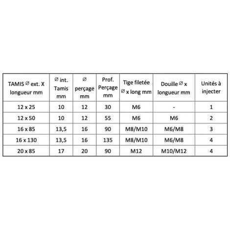 Tamis pour fixation chimique par injection de résine pour les matériaux creux