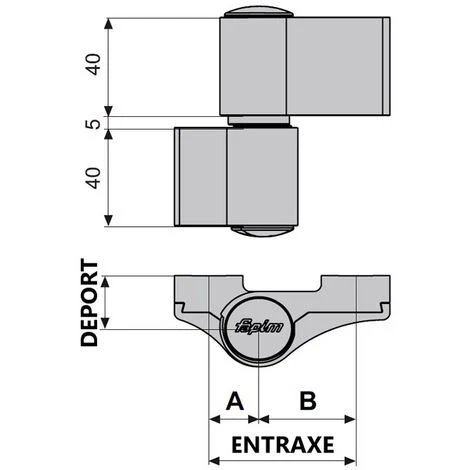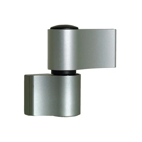 Paumelle à deux lames en aluminium extrudé. Douille supérieure de zamak, pré montée sur l’axe en acier inox rectifié.
