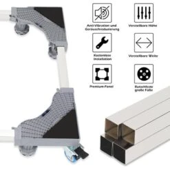 SWANEW Support Machine à Laver Piédestal Réglable En Hauteur 8 Pieds + 4 Roues 41-66cm