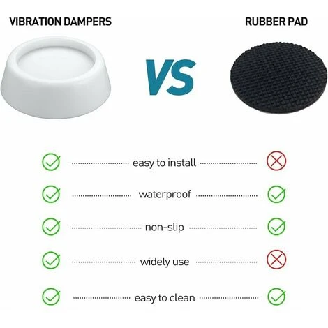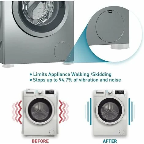 Les pieds anti-vibration pour lave-linge empêchent votre machine de bouger sur le sol et réduisent les vibrations et le bruit dans son ensemble. Ces tampons anti-vibration ont été spécialement con?us pour absorber les vibrations de votre laveuse et sécheuse, de sorte qu’elles ne fassent pas de bruit et ne glissent pas sur le sol à chaque fois que vous faites votre lessive.