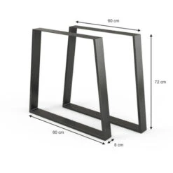 Pieds De Table En Profil Carré 60x72cm Revêtement En Poudre Noir Piètement Meuble Support Table