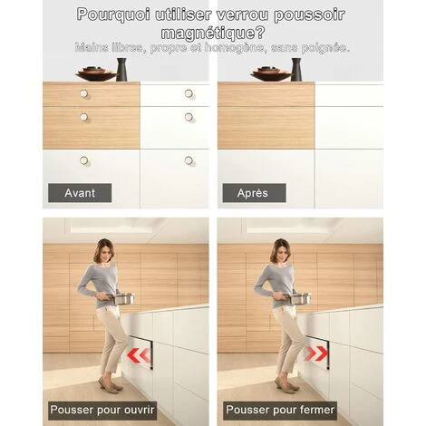 Push to Open: Le piston à ressort intégré, vous pouvez simplement appuyer sur la porte pour verrouiller ou déverrouiller avec un tampon de fermeture en douceur. Élimine le besoin de poignées ou de boutons. Créez l’apparence nette et homogène de l’absence