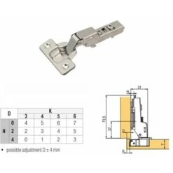 1 Charnière Invisible « KLOSE Besser » – 3D Aluminium. Couleur Inox Satiné. Droite