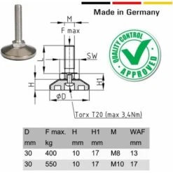 4x Pied Réglable Ajustable M8 X 20 Mm Acier Inox Vérin Vis Réglage Poussoir Butée