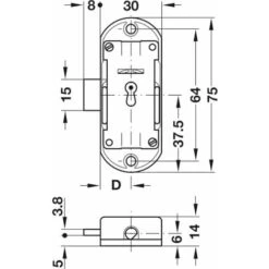 THIRARD – Serrure De Meuble En Applique Pour Porte D’ameublement, Axe 20mm, 40x50mm, Zingué, 1 Clé