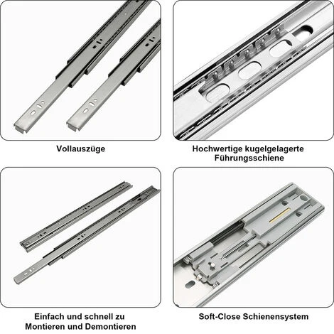 Les glissières de tiroirs en trois parties peuvent être complètement étendues, silencieusement et sans friction, le matériau épais est robuste et durable, les glissières de tiroirs disposent d’une fermeture automatique et d’un amortissement pour éviter