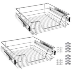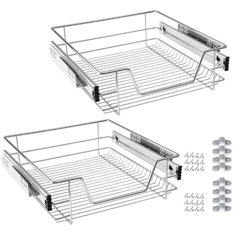 Lot de 2 tiroirs de rangement téléscopiques. Installez ces paniers métalliques pour optimiser les rangements de votre cuisine ou dans le dressing de votre chambre à coucher ! Ils viennent se placer dans les placards et vous rendent plus facile l’accès à leur contenu. Tous vos produits seront visibles d’un coup d’oeil avec ces tiroirs coulissants.