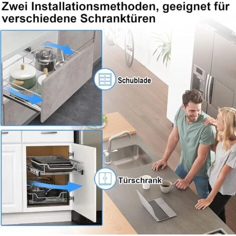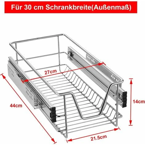 Tiroir télescopique – dimensions totales (avec rails) : environ 270 x 440 x 140 mm, matériau : métal chromé, il offre suffisamment d’espace pour ranger les épices, les casseroles, la vaisselle, etc. ; Capacité de charge : 20 KG