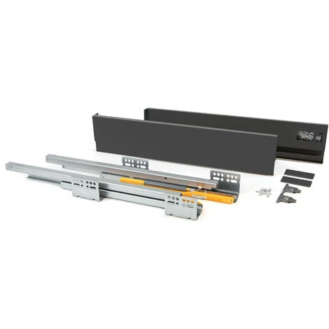 - Kit de ferrures nécessaires pour le montage d’un tiroir extérieur de hauteur 105 mm et profondeur 400 mm, n’incluant pas le fond, la façade ni la façade arrière.