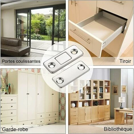 Très Mince: Seulement 4 mm d’épaisseur avec une force magnétique de 2 kg. Zéro espace entre les verrous d’armoire et la porte, idéal pour la porte de l’armoire, tiroir, placard et des portes de coulissantes ou des fenêtres. Aussi parfait pour la fermeture